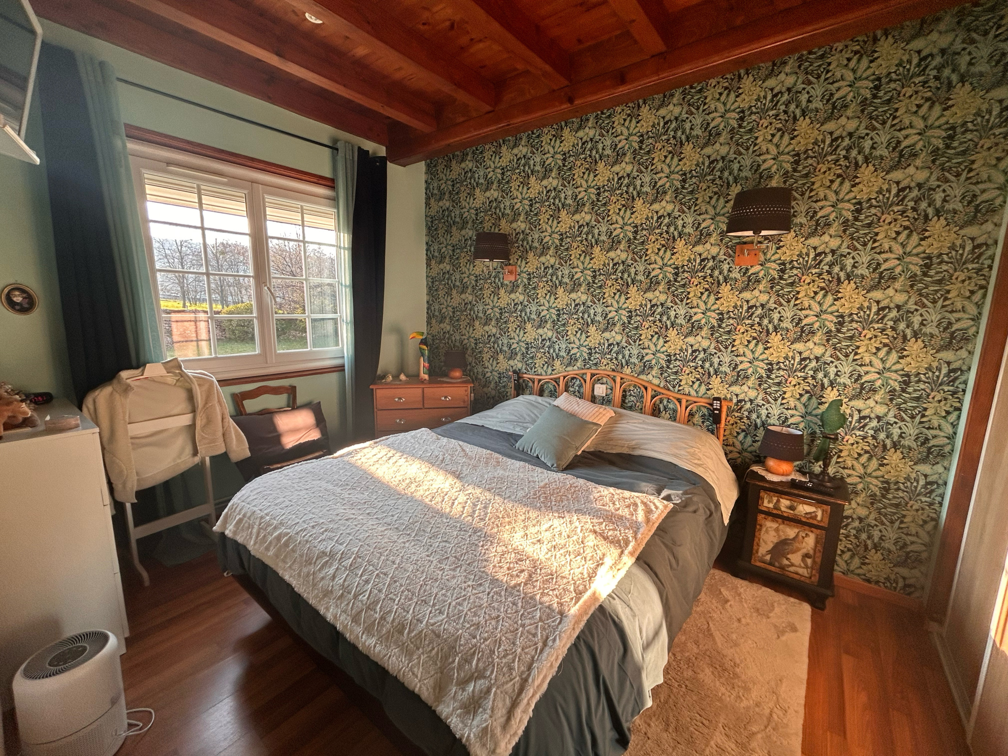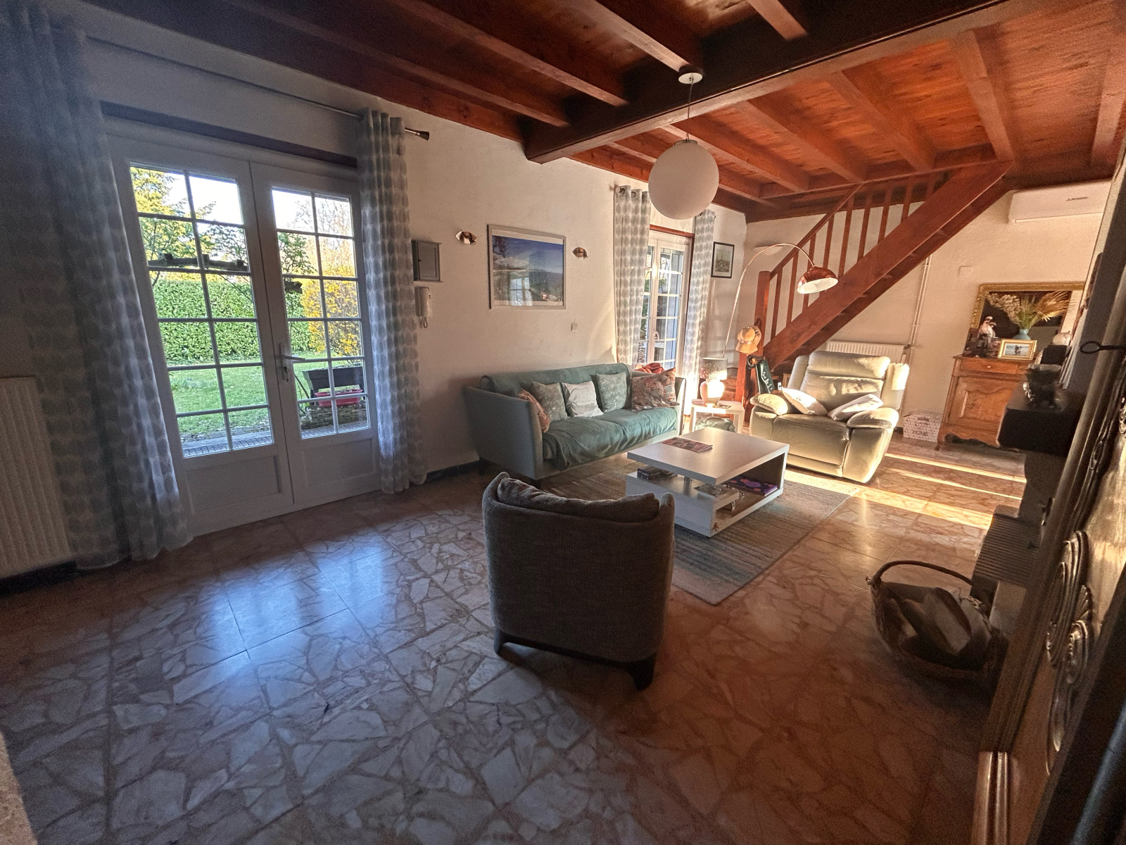 RARE à la vente : Dans un très joli hameau de Ville sur Jarnioux, nous avons découvert cette villa très bien entrenue construite dans un cadre extremement rare : au milie des chênes, le terrain est parfaitement agencé et plat et offrant une très belle vue. Située au calme, sans vis à vis, la villa dispose d'une grande pièce de vie avc une cheminée, une cuisine équipée avec un accès à la terrasse et 2 chambres. A l'étage, sous les toits un espace supplémentaire serait idéal pour une chambre d'ado ou un espace TV/chambre d'amis.