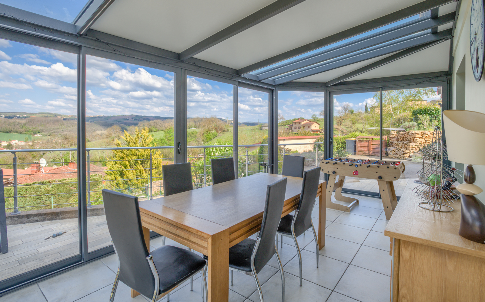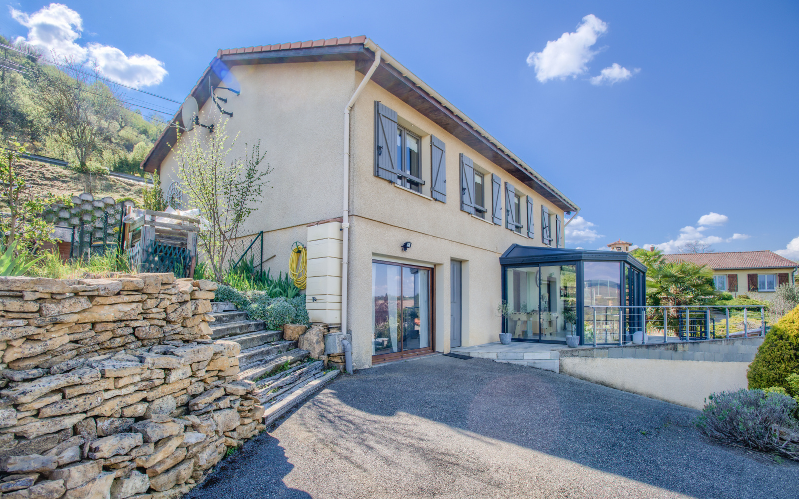 SOUS COMPROMIS : à 7mn de l'A89 et 9mn de la gare, cette maison perchée sur les hauteurs vous permet de profiter d'un environnement exceptionnel dans un cadre de vie unique. Vous aimez les grandes pièces de vie donnant sur le jardin ? vous serez comblés ! la cuisine entièrement équipée s'articule autour d'un ilot central pour prendre vos petits déjeuners et ouvre sur l'espace salle à manger et salon pour une surface de + de 50m². Dès l'inter-saison vous profiterez de la véranda pour prolonger la pièce de vie. A l'étage, vous disposez de 6 chambres + un dressing. Le jardin est agrémenté d'une piscine hors sol très bien aménagée depuis laquelle vous appréciérez la vue imprenable. Les propriétaires ont réalisé un grand gararge de 36m² avec la possibilité d'aménager un espace atelier. Posez vos valises. Commerces et écoles au village, collège à 3kms. Pour la visite contactez moi : Sandrine ENTFELLNER 06 87 49 66 72