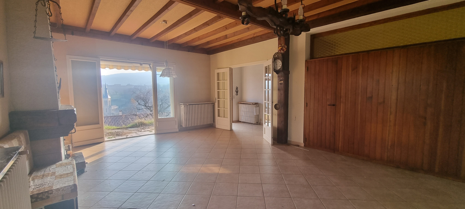 Quel bonheur de vous présenter en exclusivité une maison comme celle ci avec un environnement exceptionnel, au calme, une vue dégagée. La maison offre de plain pied avec la terrasse un hall d'entrée confortable, une pièce de vie ultra lumineuse, une cuisine à aménager et donnant également sur la terrasse, une salle d'eau, une salle de bains, et en demi niveau 3 chambres sur de jolis parquet d'origine. Le garage est très confortable et pourra accueillir facilement 2 voitures. Vous aurez aussi la possibilité d'installer un espace atelier et une cave. La maison necessite des travaux de mise aux normes en électricité et du rafraichissement mais la construction est de belle facture. De nombreuses possibilités sont envisageables pour agrandir la maison, créer un espace piscine ainsi qu'une autre terrasse. Le terrain est magnifique et profite d'une superbe vue sur l'église et le chateau et un ensoleillement permanent. A très vite pour la visite.